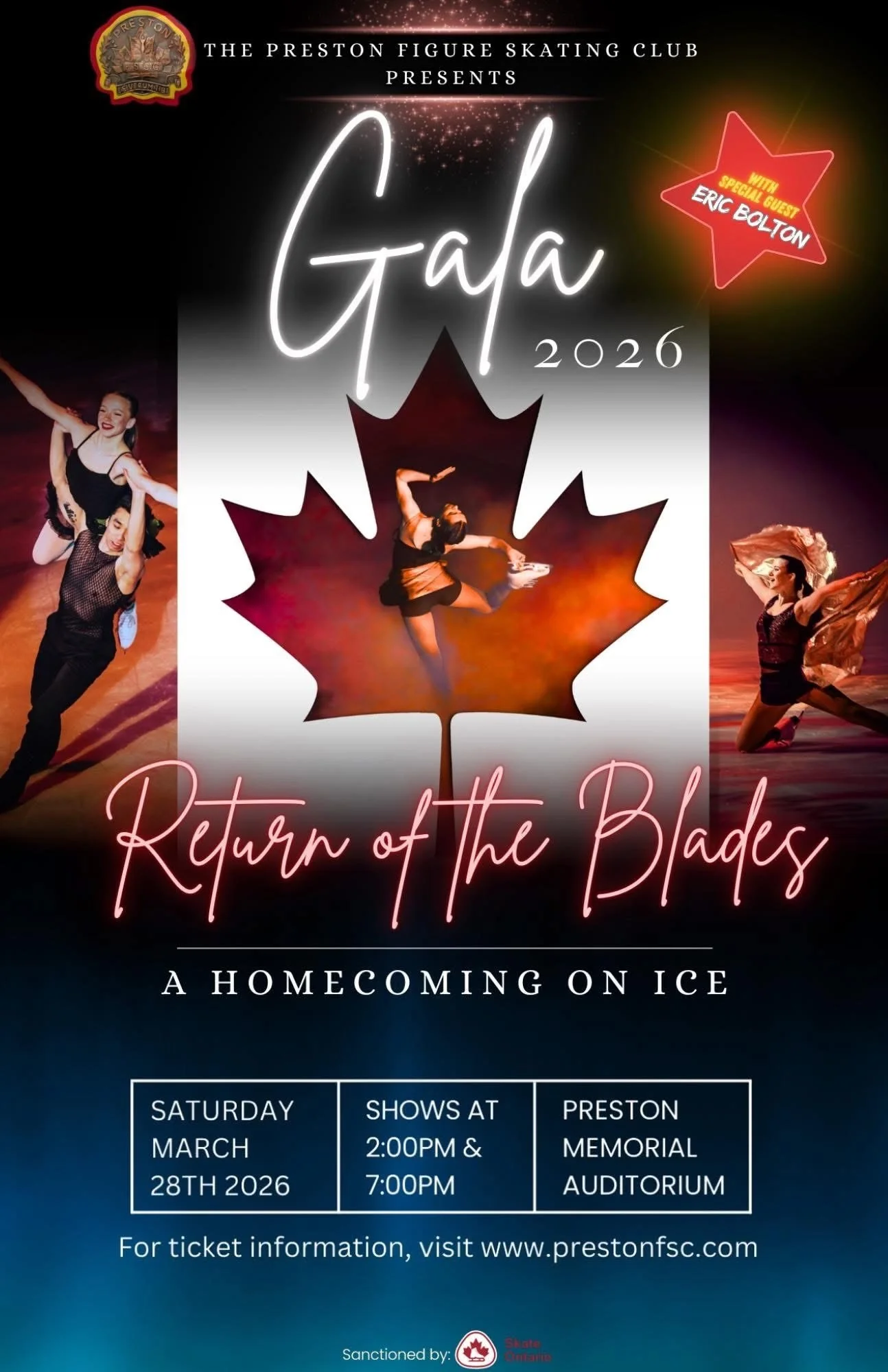 Back to All Events Preston Figure Skating Club Gala Saturday, March 28, 2026 2:00 p.m. 9:00 p.m. Google Calendar ICS